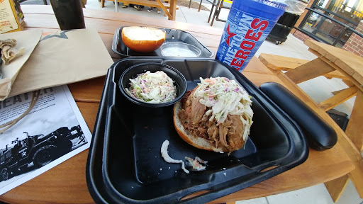 Great BBQ!!! Easily the best in the area. It also has a very patriotic atmosphere. The place is committed to honoring Military, Police, and Fire and Rescue. If you come in for lunch at 1200 they ask everyone to stand and join in the National Anthem. Just awesome!