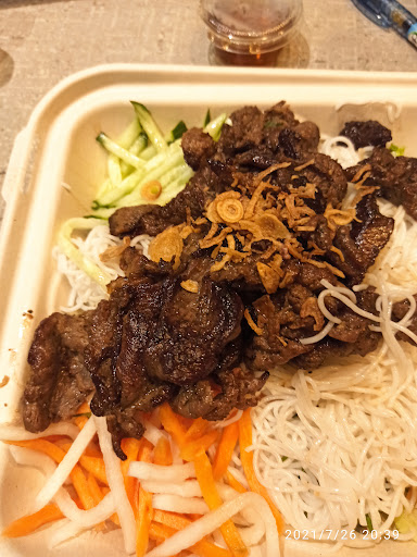 NEGATIVE EXPERIENCE, AVOID!! I dont like leaving long reviews, negative ones at that, but I hate being lied to! Heres my experience, you be the judge. Came in because of good reviews, ordered chicken and rice and spring roll. Not even half way through my mean and.... CRUNCH!! ( HUGE PIECE OF CARTHLAGE) thus lost my appetite, and messed up my tooth filling! Ouch. Asked to speak to manager, Elizabeth, Who said, and I quote "some plates might come with that hard bone like carthlage, but most dont, but it COULD be there " and "halal chicken has bones" (LIE) Let me say IT IS NEVER ACCEPTABLE TO HAVE A BONE IN YOUR FOOD PERIOD. And its worse when the manager tries to JUSTIFY IT. I was surprised by this answer and asked her how could this be, is it some sort of guessing game? Also, Ive had Vietnamese food countless times, and this was never an issue. To my amazement she quickly changed her answer when I said I would be leaving a review, and I quote "oh umm... this is the first time this happened" after REPEATEDLY telling me thats "just the way it is (the chicken)" (LIAR) What?! Really?! Thats just blatant dishonesty and mistreatment of customers. In a rude manner she asked me "what can I do?" I said since I had a BONE in my food, you should make the adjustment to my bill, and instead of not charging me... To my Surprise again she said 20% off... Lol.. Wow! I replied with, "do you think its fair to charge me anything, since there was a bone in my food?" She replied with "Ill go back and talk to the owner", I asked to speak with him and to my surprise again she said "oh the owner isnt here" LIES LIES LIES She stormed off and and a few minutes later sent a waiter to tell me dont worry about the bill, and she completely ignored me and she just rolled her eyes and brushed me off while I walked out the door, even though I wasnt rude or angry in the slightest bit when dealing with her. Needless to say I wont be returning, and recommend everyone to save their money. Note to management: please exercise some quality control in your food, and from one business owner (me) to the next, POOR MANAGEMENT CAN BREAK A BUSINESS. What a let down... Food review: chicken was full of fat doesnt look like they trim at all (pretty much a cheap version of Sarku Japan, which I love). Spring rolls were overly oily and lacking flavor. 1.5 stars at best for the food, no seriously...