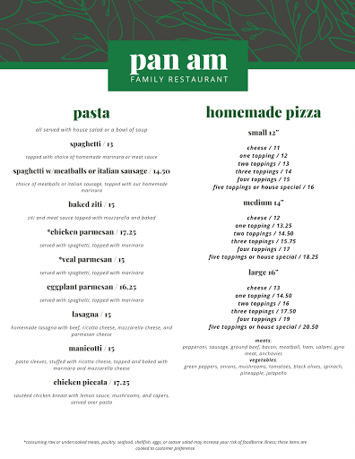A nice restaurant with a lot of variety. I had the gyros and it was a huge quantity (with plenty left to bring home for lunch the next day). Id call Pan AM a very solid family dining choice.