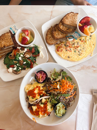 I have to say that this was by far one of the best experiences that I have had in a while. I was particularly encouraged to visit this location because of the Gluten-freemenu that they offer. My co-workers and I were greeted with smiles by the friendly staff, the moment we walked through the door. Our server, Erin, was energetic, andquite knowledgeable about the menu items. Kudos to him and his great customer service skills. One of my co-workers enjoyed the Coconut Crusted French Toast which was gluten-free. I had the Bison Huevos Rancheros. Even though I was not enthusiastic about my entre, our Waiter offered to me that I try something else on the menu The Manager came by our table and apologized that I was not completely satisfied, even though it wasn’t their fault.We all thought that our Waiter Erin was very friendly and eager to make everything perfect for us. It was quite apparent that Erin has a natural ability to make the customer feel comfortable, and satisfied with the entire dining experience. I then tried the Strawberry Pancakes which were absolutely superb! My friends and colleagues and I will be back to try some other exciting things on the menu.