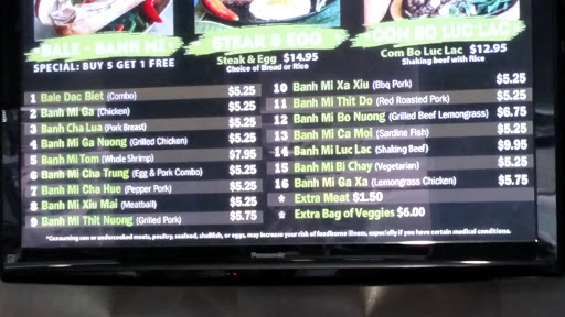 Discovered by invitation from a Vietnamese co worker. Love the crispiness of the sandwich bread. The meat filling however was not enough and was in a pasty form ( steak sandwich). The chicken sandwich on the other hand was ok except that the chicken taste was absent. The sandwich veggies look as if there were just thrown on top. Counter is very crowded with merchandise. Tables are not cleaned properly . the same young lady comes out with the same cleaning water each time. Decided to try other similar places in order to be fair in my critics. Again, the bread is the only memorable item i took away after 2 visits.