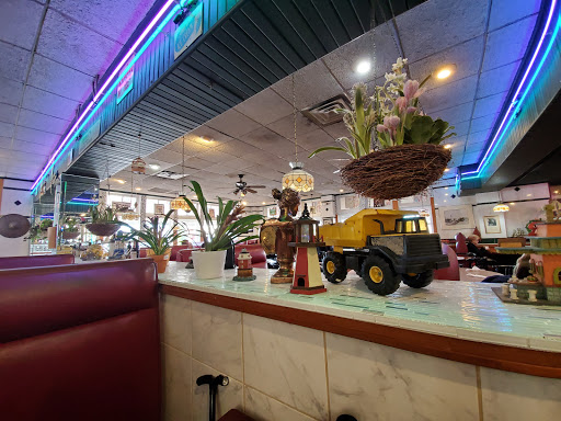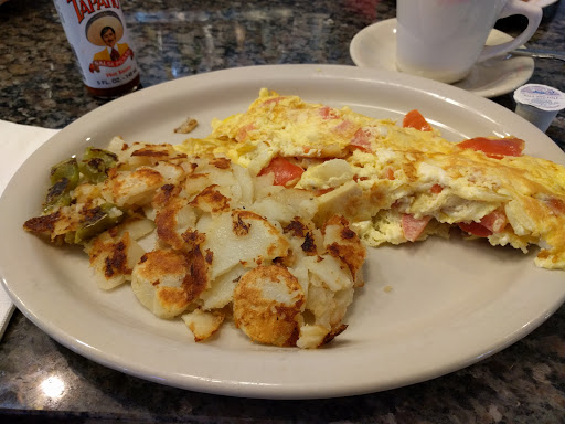 Our latest visit was just bad all around. First of all, for someone new, the menu is TOO big! Too many choices and not enough pictures...and the pictures posted dont have the dishs name on it. Our server didnt know the specials but he found out and got right back to us (kudos to him). My friend ordered the BBQ ribs and a loaded baked potato. What the server failed to mention was that "loaded" meant bacon, broccoli and sliced American cheese - also the ribs were pork although pictures of ribs in the menu were of beef ribs. I ordered the Lumberjack Special which included pancakes - I asked if I could get the Banana Nut pancakes instead of plain and he said yes. The eggs and ham were tasteless, even after covering them with salt and pepper. The main reason for our visit that night was for the dessert case. So many awesome-looking desserts! How disappointing it was to get those to our table to find them cold, stale and tasteless except for the dollop of whipped cream they added before bringing it to our table. When the bill came, I had been charged $1 for bananas and $2.05 for pecans. When I asked my server about it, he said that I was charged because I substituted flavored pancakes for plain. I expressed to him that extra charges for substitutions were not listed in the menu, nor did he mention it AT ALL when I asked if I could get the Banana Nut pancakes instead. He just looked at me and said that of course there was a charge because I substituted, and I said again that he should have told me when I ordered it. I can understand paying more for substitutions (IHOP has it right in their menu...but they charge one rate for substitutions, not an extra charge per ingredient!) but what I couldnt stomach was the servers haughty looks and attitude when we had this discussion. To top everything off, we got to enjoy the ending of our meal and conversation while talking over the vacuum cleaner in the dining area! At least they didnt vacuum at our table but they were at the next table over. So frustrating to have such a bad experience in a place that seems to be getting great reviews...