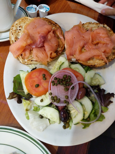 Meh. Spent $20 on brunch consisting of so so eggs Benedict, slimy potatoes, and only ok coffee. I was disappointed because I had come to the diner that promised "all-day breakfast" because I was craving a muffin...and they were all out by noon. The one shining star was the fresh fruit salad that I had in place of the muffin I wanted--it was great! Lots of different perfectly ripe fruits in a cereal bowl-sized portion; no hints of bruising or discoloration as you often see in fruit salads. The guy who im guessing to be the manager? was also very friendly and attentive and service was decent.