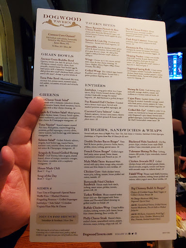 Anytime my bf and i want a nice place to go, we go to dogwood. weve been there probably 5 times in the last few months and we always take guests when people are in town visiting. Their pecan crusted fish was delicious! we had their wings too which were great. ive also had their salads, chicken cheese steak and more and everytime im never disappointed. the food is really good and the price is just right depending on what mood we are in (cheap burgers or fish/steak). highly recommend it!