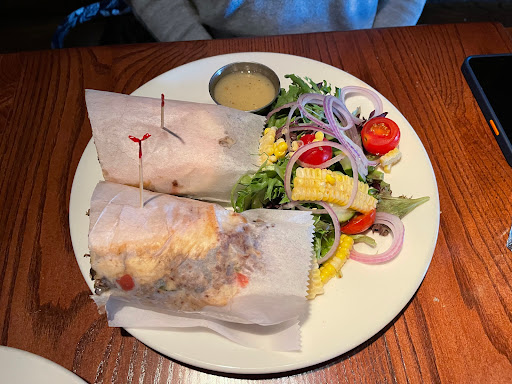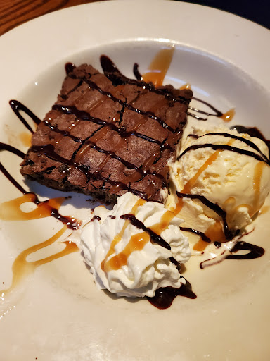 We love going here after church on Sunday for their great brunch, or other times to enjoy a nice lunch. We have always had a great experience with their food and service. They added additional outside seating out the back of the restaurant. The upstairs portion is nice, but more of a bar with some tables. The downstairs seating is not great since it is basically in the parking lot and fenced off, making this outside area kind of dark. In inside atmosphere can be great in the winter if they have the fireplace going. However, in the summer, the windows are so small and the lighting weak, so it always feels a little dark and not as inviting.