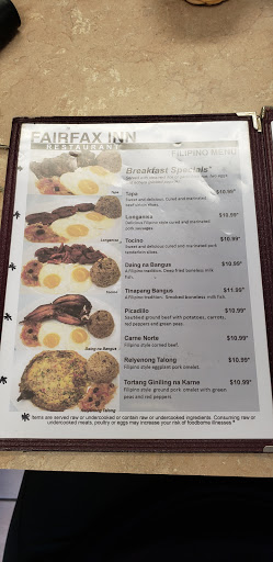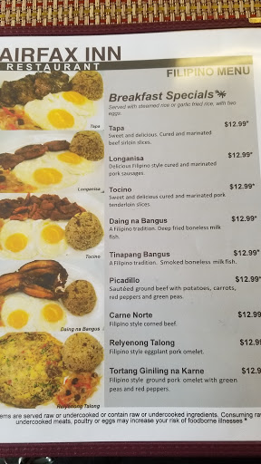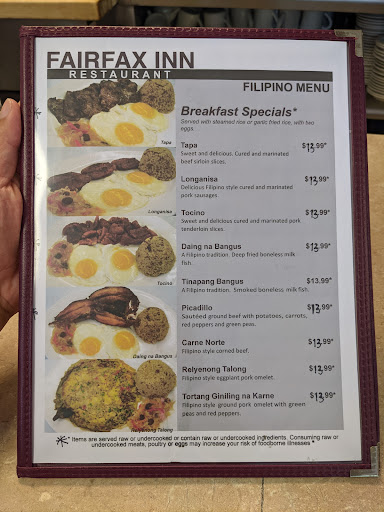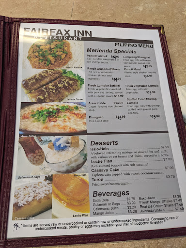 Inn?! I would never have guessed that this is a Filipino Restaurant. Fairfax Inn?! Change the Name. Food Taste: ok Dining Room: ok Service: ok Overall: ok Would i return? No Additional: hard to locate because it is located within an office building