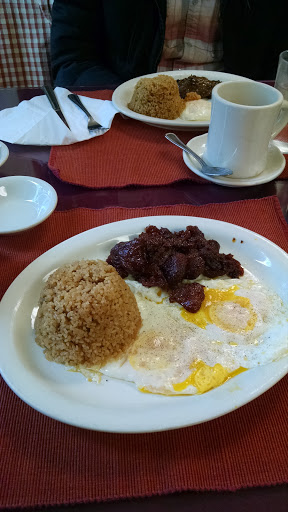 The place is small. They have menu for Filipinos and Americans. You can order from either menu. Ive always come here for the Filipino menu. The breakfast is good. Serving is small compared to local Filipino restaurants. The staff are nice.