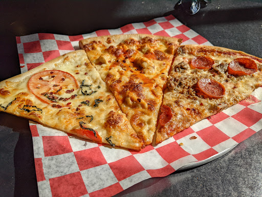 The place is about 5 minutes walking distance from where I am. The employees are friendly enough, not stand offish. Its super quick, I stand there for about 5 minutes before Im given my pizza to go. They have pizza by the slice, which I love. And they have 2 beers on tap, Goose IPA and Virginia Lager. Only downside is they dont have enough of the toppings. Very little actual pepperoni on the pizza. But the pros outweigh the cons. I like the place.