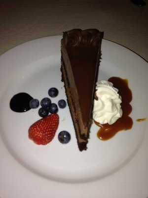 This was a small quiet atmosphere but very friendly and doting staff, very generous. Ordered filet mignon with bleu cheese, medium rare-- cooked perfectly. It was my friends birthday and we got a complimentary slice of delicious chocolate mousse cake and the attendants insisted we have a whole bottle of wine for the price of the two glasses we ordered. Would definitely go back!