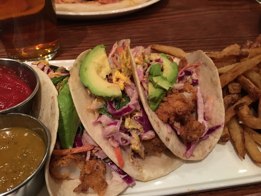 I was not impressed by this restaurant. I dont drink beer so I cant testify on that but the food and the service were poor. From the beginning our waiter was cold and inattentive. He would walk past our table without a word. When I would get his attention for something, I felt like I was annoying him. Service was also slow. It took about 20 minutes for our appetizers to come out. Then two minutes after our appetizers arrived, our entrees were served. This is a pet peeve of mine at restaurants. I would like some time to enjoy and finish my appetizer before my main meal is brought. The food was mediocre at best. We had the spinach and artichoke dip, which normally I love but this dip was basically goat cheese with a bit of spinach thrown in. I ordered the mad fox burger. It was cooked as I asked for but it was just bland. The roll was supposed to be brioche but it just tasted like a regular bun and the garlic sauce tasted like plain mayo. I could go to Chilis or TGIF and get a way better burger for a better price. The only reason this place gets two stars is because of the desert. We had the fried nutella/banana cheesecake and it was delicious (although I didnt taste any nutella). Overall, there are definitely better brewery/tavern type restaurants in this area and I would not come back here.