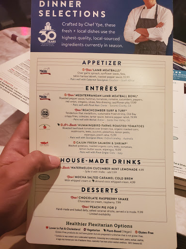 Always great new healthy options menu. Have had just about everything on it a we go at least once a month. Kids night Tuesday and kids love the tenders all breakfasts and especially the banana suffed French toast. The salads are all good the meatloaf and deconstructed pot pie are nice twists on the traditional. Bottom line great chain with thoughtful tasty, healty menu options. Or you can get the fish and chips or chicken fried steak! Your choice.