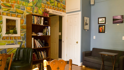 VEGAN BROWNIES. I mean... what more do I need to say, right?? In seriousness, I adore this place. Its very small, but thats part of the charm. Excellent vegan (and gluten-free) coffee and snack options. The front room has a couple of seats, a small bar along the wall facing some shelving with jewelry and bath goods from local individuals (I love when businesses showcase local artists and creators). You can walk to the back, past the baking area (you can actually talk to the baker / chef about her vegan recipe ideas) and into a small sitting room with bookshelves filled with locally traded books. Awesome awesome place.