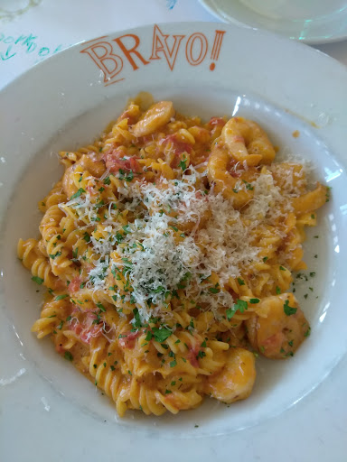 Bravo Cucina catered a team dinner for my daughters soccer team while we were staying in Fredricksburg for a tournament. Philip, the general manager, was so very helpful and suggested their fantastic Pasta Bar which included a selection of pastas, sauces, proteins, salad, bread, and best of all- catering trays and racks, sterno, serving pieces, and disposable dinner wear all for $12 per person! Philips staff even packed my car for me. All of the other parents were blown away and the dinner was perfect and so easy to set up in the hotel lobby. The only down-side is that the dinner was such a success, the team put me in charge of Team Dinners for the rest of the season. Oh well- hopefully there will be Bravo Cucinas nearby!