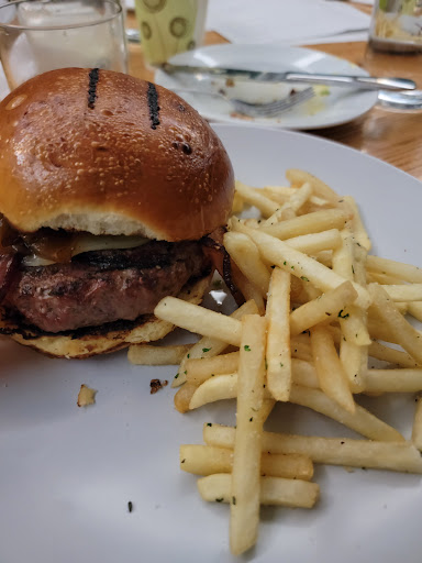 Foode is a great low-key concept for excellent food in Fredericksburg. Located in an atmospheric and historic courtyard between brick buildings in the old town, it can be fairly easy to miss the entrance. The tables outside in the courtyard are great for some fresh air with your meal. There is no wait service as you order at the counter inside from the fairly extensive menu featuring farm to table local fish and game. The beer selection is bottles only, but not bad with a few crafts and even one or two locals. Everything on the menu was delicious. The softshell crab was very unique with a nice crisp crunch and delicate sweet meat inside on a tasty salad bed. The burger is huge and plump and cooked perfectly with great seasoning and tasty blend of meat. The steak and pork chop were exquisite huge thick cuts of meat. Service is super friendly considering they don’t get tips. Dog friendly.