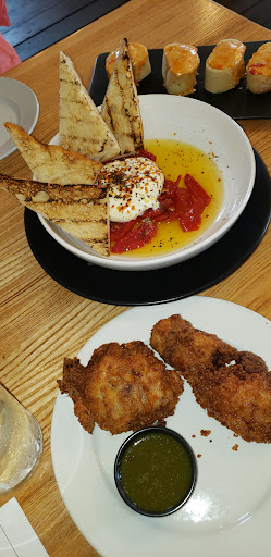 It was good, but not great. We got two of their cocktails, old money and the watermelon purée one. Old money tastes like a shot of bourbon. It was rough to drink and the watermelon purée one was okay but a weird mix of sweet and spicy. Anyways that was a wasted $20. The pimento cheese melts are good. I got the New York strip steak. It was pretty good had some garlic butter on top and fries. Wish it came with a veggie or something else. But just steak and fries for $21. And my gf got the roasted chicken. It was pretty good had a honey drizzle around the plate, the kale that came with it was nicely seasoned with spicy mustard. All around it was nice but Id get the burger next time. The main dishes were just okay.