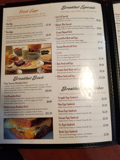 I dont know how they manage to offer such a varied menu, but the kitchen and wait staff do a good job. Ive never been disappointed at Four Seasons and bring family there often for a casual breakfast, lunch or dinner.