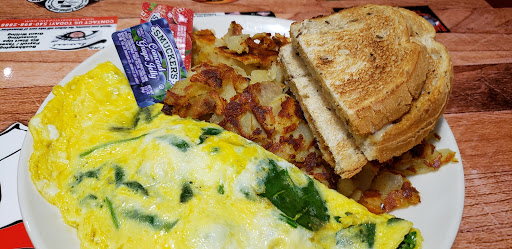 First time visit, will not go again. Staff was very friendly and nice. However the food was bad. We were served the wrong omelette. Then the owner argued with the waitress saying we received the correct omelette.They fixed the order, but it was still very bland. The other meal we ordered was pancakes with eggs and bacon. The pancakes were raw and the eggs/bacon tasted like a barn (seriously). Then despite all the errors, the waitress was only allowed to discount our meal 10%.