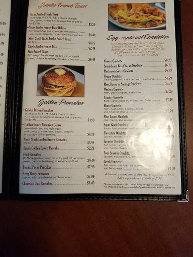 Love there breakfast. Great prices and serving amount. You get more here than Bob Evans. Pancakes are great and omelettes are good. This is the only meals I have eaten here.