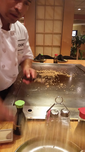 Run of the mill teppanyaki place. Their salad was fortunately very crisp if uninspired. Miso soup seemed more like warm chicken broth with a few scallions. The grill chef was engaging but a bit messy. He also insisted on doing that thing where he launches food and you have to catch it in your mouth. But the grill food was tasty, although a bit over seasoned. I would probably not visit again in summer. It gets really warm and stuffy in the restaurant once the grills get going. Fine place to bring kids though.