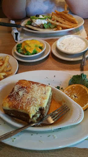 Ordered a gyro & gyro platter. It was good just a little on the salty side. The waitress was attentive. No complaints in that dept except for over hearing the rest of the staff they cant wait to go home. Didnt show up at the last minute. We arrived an hour and half before close. Not expecting the world from a dinner. Just keep in mind thier prices are about the same as more upscale establishments. So if you want to go somewhere that you do not hear the music coming from the kitchen mixing with what is playing in the dinning area.... go else where.