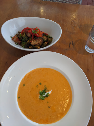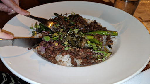 A wonderful menu with rich selections of seafood and fresh ingredients. the lobster spring rolls are amazing, be sure to ask for more aioli with the order, it makes the spring rolls pop! We had the chicken and mussels entree, both seasoned perfectly and served with great wine pairing as recommended by our server. The restaurant has a modern feel, although the high tables look to be uncomfortable if you plan on spending an extended dinner there. The bar is small and cozy and does get packed with locals later in the evening. Service can be slow at times, I believe it has more to do with where you are seated than the servers themselves. If your in the upper dining room and your server has tables in main as well, it will be slow.