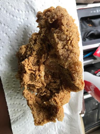 Check out this chicken. Looks like someone ate it, then they rebreaded it, deep fried and sold it. Yuck. There was no meat on it at all. Choose another option. Jacob was the guy at the counter.