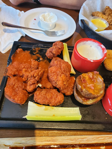 GREAT staff. Food usually good, especially the Jack Daniels flat iron steak. Can be rather noisy at times. The all you can eat appetizers are usually just warm when delivered but good.