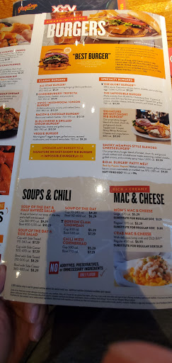 Were regulars on Mondays: $5 burger night, of which they have a selection of burgers, and you can "upgrade" to prime beef for just a little more. There are additional fancier burgers not included in the $5 special, and so far I havent met a burger that I didnt like here. My SO usually gets the barbecued pork sandwich which is quite tasty and weve tried other entrees on different days which were quite enjoyable. Iced tea, both sweet and unsweet is in a good-sized glass with free refills, and the blueberry iced tea is in a significantly larger glass but refills are .99. Since were regulars some of the waitstaff bring us our drinks right after were seated and make sure were getting our regular orders, pretty sweet. Plenty of TV screens with sports, cartoons, etc. with speaker boxes on the tables, separate bar area. Some outdoor seating, just check which way the wind is blowing so that youre not downwind of smokers or the cigarette butt drop.