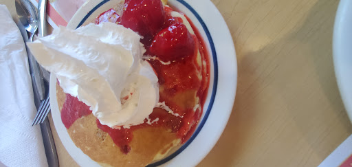 I had already had a bad experience with horrible customer service in the past at this IHOP. However having a pregnant wife, if she wants pancakes then you better get her some pancakes. Even if we were more than halfway home. So we park and walk into the IHOP with our 13th month old and get a seat very quickly. Seeing as how it was close to 5:55 on a Tuesday I didn’t expect to wait long for a table. Our server Donovan came into our table quickly and took our drink orders, two waters with lemon. I noticed they were offering all you can eat pancakes again and I figured I would get a stack and call it a day. Well unfortunately our misinformed waiter wasn’t familiar with the menu and didn’t know if I had to get a combo or just the pancakes. So we said how about you get our drinks double check and we will order when you get back. In the interest of proving a point let’s say it is now 6:05, when Donovan comes back. After double checking Donovan confirms we do not need to get the combo for the all you can eat pancakes. My wife orders her pancakes, scrambled eggs, and turkey sausage. For our daughter macaroni and cheese, with French fries, and I order just a stack of pancakes. At the latest our order should of went in at 6:10/6:15, remember it is pretty empty and Donovan only has one other table besides us. After losing track of time and talking, my wife’s food and daughters food comes out around 6:45/6:50. I notice quickly that she is NOT happy, her food is lukewarm at best. The butter on her pancakes is sitting on top very comfortably and not even thinking about melting. Our daughters French fries are medium temperature and her macaroni and cheese is cold. My wife looks around for Donovan who is busy talking to his coworkers. After a few seconds we raise our hands in hopes that he realizes that his table request his attention, still he ignores us. At this point I am starting to get annoyed it is close to 6:55/7PM my food hasn’t arrived and I have to pursue my waiter for the evening. Eventually he makes his way over to our table and my wife asks, why is our food lukewarm. I don’t know if kids today have never heard of or don’t know what lukewarm is, however he didn’t comprehend what that meant. So she phrases it differently has our food been sitting long because it is not hot? His response I brought the food up as soon as soon as the order went up on the counter. That is fine, if that is what you say so be it, however can you get us some ketchup for these fries. By this point I am not happy and I am just ready to go, my pancakes haven’t shown up and I don’t like the quality of service I am receiving. Donovan comes back with the ketchup and some more pancakes for my wife since hers were lukewarm. Meanwhile it is around 7:10/7:15 and I am sitting at the table with a glass of water and no food. I figure this dance has gone on long enough, can we please speak to the manager about everything that has happened. The manager on duty Scott comes over, takes care of our bill and apologies at how things transpired. I decided to ask Scott, why is the service so bad at this IHOP. Last year when they offered all you can eat pancakes the same thing happened. My wife’s food came out with her pancakes 5-7 minutes later my pancakes came out. I also asked him how long does it take to make pancakes, his response 3-5 minutes. In saying that it is now about 7:20/7:25 and I still haven’t received my pancakes. Scott says please come back and I will personally make your pancakes for you, unfortunately at this point in time the more he apologies the more upset I got. I nodded with a smile on my face and politely leave with my wife and daughter. Never again, never again will I go to the Gainesville IHOP. Scott said he had recently taken over as manager and that the previous lady is no longer there. Glad to hear but you have already burned my twice no third strike in this instance.
