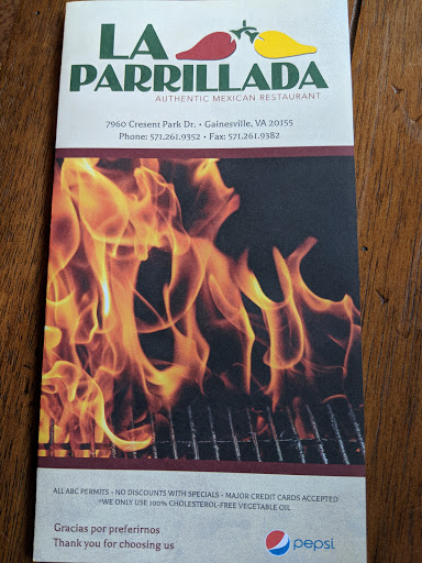 Ive been to two Mexican places since living in NOVA. This place was one and El Vaquero West Restaurant was the other. Ive been trying to find the best authentic Mexican in the area. I came from an area where Mexican food was absolutely fantastic. After visiting these two places, I am so confused. They had nearly an identical menu. Im not sure if they have the same owner or just the same menu designer. Everything was pretty much the same but the prices at La Parrillada were 15 - 25 % higher. Many of the same pictures...all the combinations were the same. Im afraid to go to another restaurant here in fear of coming across the same terrible menu. Food here was not very good. I had an appetizer of Chicken Nachos and the chicken was very bland, dry and inedible. The chips, despite being placed under a broiler were soggy and unappetizing. I ordered two burritos with chicken and salsa verde. They were confused by the order and because the server couldnt even comprehend the menu, I knew i wouldnt get what I ordered. I just wanted two burritos with chicken and green sauce on top. I got the green sauce but the burritos were ground beef and not chicken. I didnt correct them of their error because the chicken before had been so terrible. The only highlight of the meal was the ground beef...it was fantastic and didnt taste at all like ground beef you usually get from Mexican places. I never order ground beef because its usually terrible...but Id happily do so from this location. Service was okay, but I waited longer for my check than I did for my appetizer and entree.