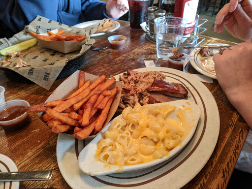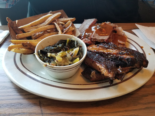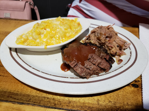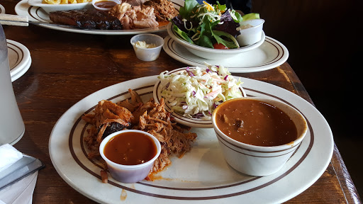 Not the North Georgia barbecue I grew up with, but quite excellent in its unique way. I usually enjoy the pulled pork (try the whiskey-based sauce!), but the brisket is good and they have some of the best ribs Ive ever eaten. Portions are not so big that you leave food on the plate, but enough to keep you from walking out the door hungry. The ranch beans are wonderful and the cole slaw tangy, just like it should be. The cornbread is a little too sweet for my taste (with a hint of cinnamon in it?), but I am not there for the cornbread. All-in-all, this is one of my favorite places in the Gainesville area.