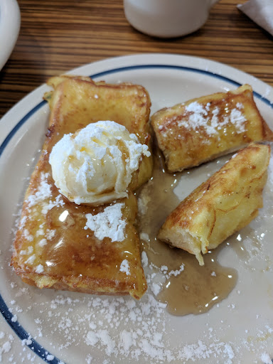 When its busy its really busy. Friends like to go after Sunday church. Yes there are still people who go to church! Many families there for pancakes and berries when were there but I like the fish meals. We often add the salad an a 1.50 extra well worth it. So good. No iceberg lettuce. Some kind of frilly lettuce I did have growing up. Right near Michaels, DC shoes (think I got wrong name) dollar tree, car parts store, church supply store, dentist office, golf store for u guys, and mid eastern grocery store. Be sure u turn into right restaurant because there are several and first time I turned into wrong place to meet friends and didnt know why they werent there!