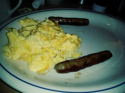 Dont go here for breakfast at dinner time, they do a awesome job in the morning but failed to make the cut in the evening. We showed up around 430, three cars in the lot should have been a good clue. Took forever to get the food out, and when it arrived it looked like my crazy Senile 100 year old grandma made it. There was something so wrong with the pancakes, some Ingredient was missing........nevver again! AM only from now on, oh by the way the server was great!! This is how it came to our table.