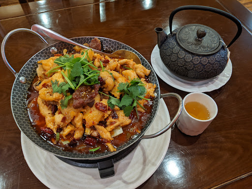 This place is definitely legit. The food is excellent and quite authentic, as my father who spent ~5 years in China was able to verify. The highlights for me were the pork belly starter and my entree, the Golden Mountain Chicken. It is quite literally a mountain of delicious fried chicken strips covered in a savory sauce, not the overly sweet stuff you tend to find everywhere else. Im not a huge fan of really spicy Chinese food so this dish was right up my alley. The pork fried rice we ordered was good, although pretty much in line with other regular Chinese joints. My brother got a smoked duck he really enjoyed. The service here was friendly and attentive, and we didnt have to wait long for our food either. Really a quality establishment here overall. We got here around 5:30 on a Friday and were seated immediately but after 6 or 6:30 it had filled up and there was a bit of wait.