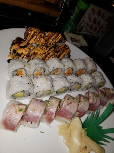 Service was mediocre at best, they were nice- just not very quick. The place is extremely overpriced for how dirty it is. Soap scum and dirt around the sink, facet loose from the sink ( you can literally pull it out of the vanity top) broken and taped paper towel/ toilet paper dispensers in the bathroom, floor is sticky and has a film on it. Grout is black when it should be white... doors and handles sticky.... walking around the restaurant all the vents are covered in black dust (including the ones not in the same room as the open flat tops for hibachi) the tile around hibachi grills had black soot and sticky film. Glass was all greased over and cloudy, everything seemed like it was falling apart. Sushi took about 15-20 minutes to come out, it was warm... and the show was not great- clean your restaurant up- keep it organized and put money where it belongs and you will make money, stop over charging for dishes slathered in teriyaki sauce with barely any meat.... if a health inspector was there- you would probably fail horribly...