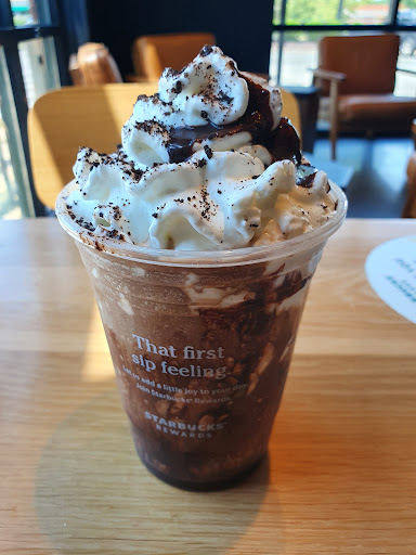 Standard issue Starbucks. The parking here is consistently bad and Ive never found a spot near the entrance.