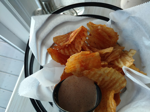 The calamari appetizer was probably the best I’ve ever eaten! Very fair prices for excellent food. There were no seats left at the bar, so we sat next to a window overlooking the marina. The White Russians were delicious and delivered promptly. Yummy homemade potato chips were served gratis. The service was excellent. I will definitely return and try more items on the menu. Its lucky to find a restaurant in the area that has a cool vibe, water view, outdoor dining and absolutely GREAT prices.