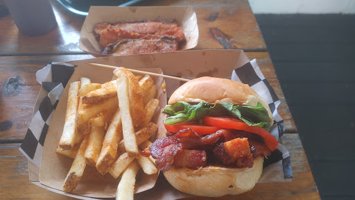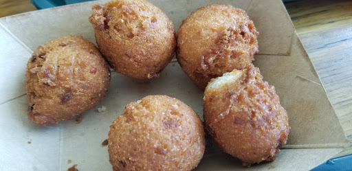 I had Heaven on a Bun...It was pretty tasty for sure! Apparently it was seen on Fire and Man or some such TV show. Fried egg, delicious bacon, and beautiful pulled pork on a bun slathered with baconaise, lettuce, and tomato. I had it with the hush puppies - delicious! My husband copied my order and we had a family size side of mustard based potato salad, single serving size of the pasta salad, and our 5 yr old went with the macaroni and cheese. The mac and cheese was the most disappointing in that the sauce tasted slightly gritty as if it had been cooked over too high of heat. It really didnt stop me from enjoying it. We went early (11am) and it was already filling up fast so I suggest be prepared for a wait or arrive just as it opens. Outside seating is nice through the truck traffic is quite loud. They do have beer/wine (Try the Bold Rock!) and the usual lemonade, sweet tea, and sodas.