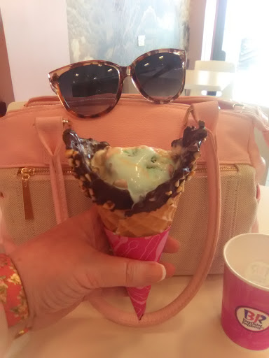 Crappy, unreasonable service, but great ice cream... Every Baskin Robbins offers a free waffle cone with a 2 scoop purchase. I paid for my waffle cone because they gave me a military discount??? Argued the facts, but these folks cant (wont) give the waffle cone (which everyone gets for purchasing a 2 scoop) and a military discount??? What if I had a coupon.... I take my military earned money elsewhere and I recommend you do the same.