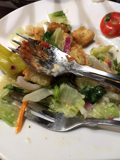 There were 5 of us at the table. 2 children and 3 adults. They serve unlimited salad. Yet I was told that I had to order another for myself because salad didnt come with my order. But they will only put one bowel of salad on the table. I didnt buy a salad but I helped myself to all the salad I wanted and dared them to say anything anything at all. Other than that we had a wonderful time? I like olive garden.