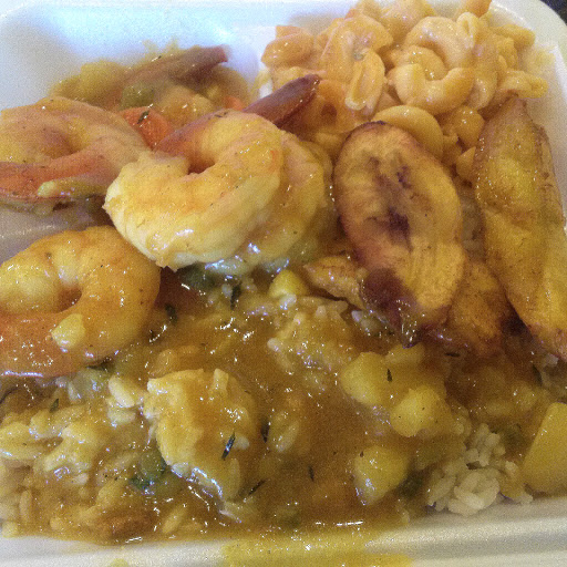 The food is delicious! Curry chicken and jerk chicken taste fantastic. The rice and beans and cabbage is good. The rice is not dry and the cabbage isnt over cooked. Its a nice heavy meal and the portions are enough to share.
