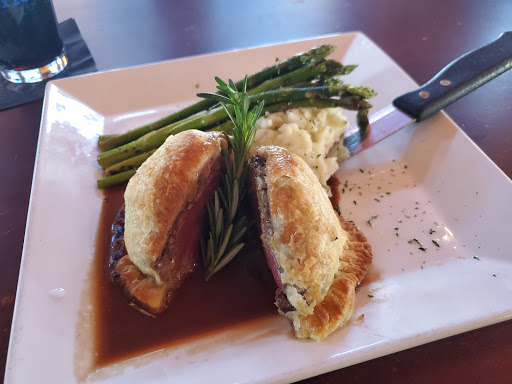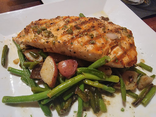 Four of us had the house specialty fish and chips. The portion of fish was huge and the steak fries were ok, even though they were a little on the cold side. The fish was cooked very well, crisp batter and flaky fish without being greasy. The service was....ok. I did have to ask for a refill of my drink and it felt a bit like I was inconveniencing the waiter. That was a little irritating. Typical pub atmosphere, lots of beers on tap and drink specials before 6pm. Kid friendly restaraunt which offered tween portions which is the first time Ive seen that. Worked out perfect for my kids. We would go back again when we are in the area.