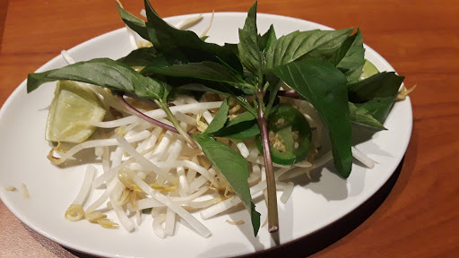 This is some very nice Vietnamese food. There are the flavors unique to Vietnam present in each dish, and the variety is nice. I would suggest the chicken pho to someone having Vietnamese food for the first time; the unfamiliar flavor is present, but light. The bubble tea is a very nice dinner drink, and interesting well. There is a full service bar. They have booths that could seat 8, and are very comfortable for 6. The décor is nice, affording an intimate feel even when the dining area is full. The service was good, though not stellar. Total time for dinner was under an hour.