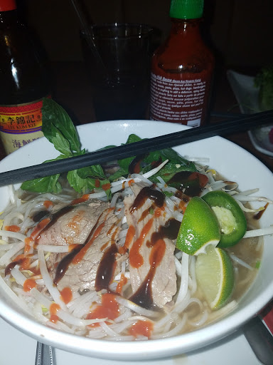 Great food and great service. The pho is piping hot and very flavorful. The inside decor is very unique and the staff are very friendly and welcoming. Great beer selection and has a bar inside with huge flat screen TVs. Try the egg rolls they are crispy and delicious.
