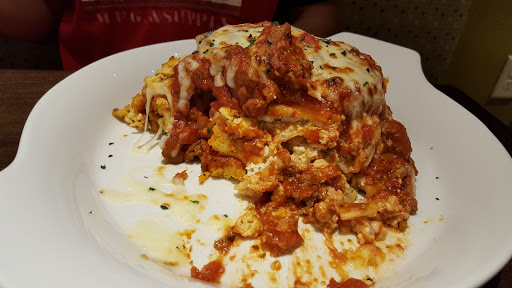 This is a brand new Olive Garden in Harrisonburg, VA. Weve had great service every time weve gone so far and Ive had the Chicken and Shrimp Carbonara twice (see picture). It was wonderful. The Fiery Alfredo sauce is good too! Would recommend however, the wait times are long since it is new and located right off the interstate. The parking and roads to get in to Olive Garden are horrendous! The entire intersection needs to be redone. Other than that, its really good.