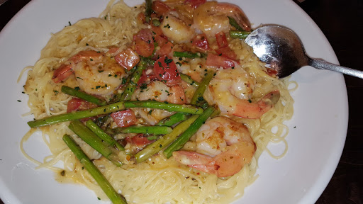 Besides a 50+ minute wait, we were met with a salad with no tongs for serving, we used two forks in their place, then a second salad with no tongs and no dressing. The salad plates were minimally washed and in fact one had to be returned with visible salad dressing still on it and swapped for new one that was not much different. Note to management, : Might want to change the water when youre running that volume. The appetizers and main courses were microwaved, making them either under or overcooked, in this case both. The pasta on the shrimp scampi was hard as a brick, all around and within an inch around the diameter of the entire dish. The server was nice enough as she was well acquainted with all of these issues which indicates to me that it is fairly normal. So much so that their customers have come to accept it as well! Marked this one as a never again, unless we need a breadstick!