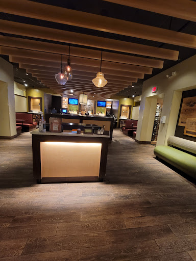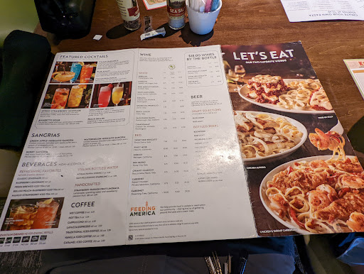 Surprisingly cozy inside. This restaurant has a decent bar with a tv. Nice decoration with a modern feel. The food is still the same, some new items on the menu. The Zuppa Tuscana is pretty good, with a bit of spiciness to it. Shrimp Scampi is a bit too salty for me. May be with wine it would be balanced out? In all, this restaurant just opened about 2 months ago and it feels more upscale than the older Olive Garden restaurants in other places. The wait staff is attentive. The hostesses did not bid us a good night even though it wasnt busy. We usually hear something from the hostesses as we leave at other Olive Gardens. Oh well.