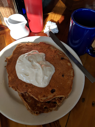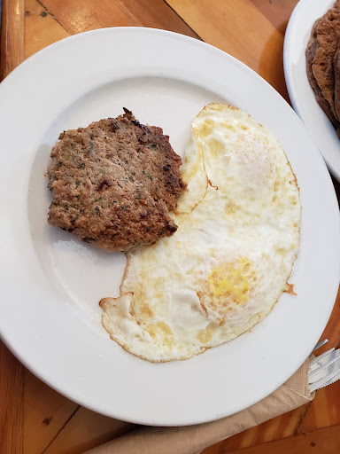 Went here Easter morning expecting a line out the door but surprisingly we were able to get a table immediately. For the two of us we ordered a lot of food but it was all worth it. Before I continue, I want to point out that this was the best breakfast I have ever had in Harrisonburg and one of the best breakfasts Ive had my whole life. Please dont think I am exaggerating. It all started with the comfortable seating, uniquely designed tables and comfortable sound level. Then came the coffee and that is when I realized we were in for something wholesome and satisfying. We ordered a tall order of Banana Walnut pancakes, a short order of the Blue Monkey pancakes, a side order of one egg scrambled, a side order of cheesy eggs and some spicy potatoes. We read that all foods were made with local ingredients that were specified on back of the menu. The pancakes were done perfectly and you could taste all the ingredients in the first savory bite. The eggs were perfect as well and we add ketchup to our pancakes which always makes things tasty but this was different. The ketchup was also homemade in house and had a totally different texture than other ketchup out there. The spicy potatoes were excellent and had the right amount of spiciness to them. All the food was outstanding and we had a lot to take home with us. The only catch with the whole place is that they only take cash and check so make sure you go to the ATM before. For all that food mentioned it was $21 so the price was on point as well.