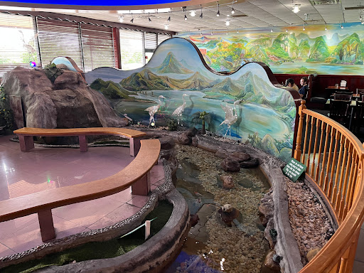 When you first walk in, it is so beautiful. The small bridge walkway over the pond is such a nice entrance to the restaurant. When I was escorted to the seating area however, my enthusiasm was quickly replaced by a slight amount of concern. I noticed duct tape on the floor holding the carpet together and dirty walls. Once I sat down I quickly realized the seats were well worn in and a bit wobbly at that, and that was one of the booths. From afar it seemed there were a lot of choices of food, but once I got to the buffet tables, I realized there were actually more American dishes than anything. Some of my favorite dishes were not being served. Also what was being served was in small supply and many of the options seemed like they had been sitting awhile and never seemed to be replenished. They did have a decent seafood selection, but nothing that looked very good . The sushi bar and the hibachi grill were probably the best parts of the meal. Im not sure it was worth the price. My husband and I paid $24 for 2 plates on Thursday night. Ive had a much better experience at other buffets for less. There has to be a better oriental buffet than this in Richmond.