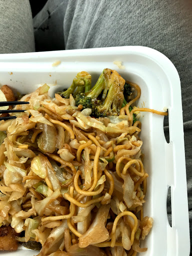Elmers glue. That is all I can think of when trying to describe the consistency of the sauces on the meat I ate. I waited in a line, had a guy put rice and two kinds of meat on a plate. Add egg roll and no drink... 10 bucks. I could barely taste a difference between the choices. The orange chicken was not spicy AT ALL! The egg roll was loose and soggy. I was still hungry when I was done. Wildly disappointing and overpriced. Across the street I go a buffet and am eating any of at least 8 choices with rice and egg rolls and as much as I want for 7 bucks. At an actual Chinese spot. I will never make this mistake again.